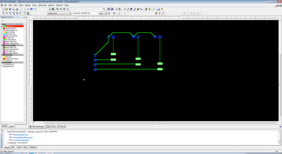6.     3D Board Viewer: Another feature that tends to cost extra in many design tools is part of the package. Once you have laid out your PCB you can, with a single click of the mouse, view an interactive 3D model of the board. Also, it makes nice eye candy for your website if you are trying to promote your project.